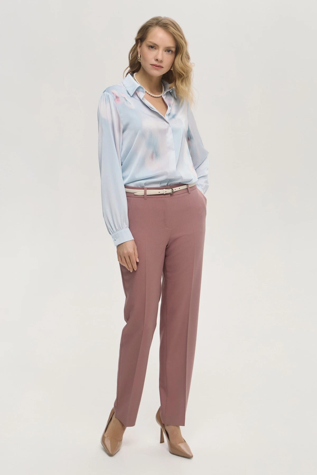 Сложный оттенок пыльной розы универсален и привнесёт романтичную ноту в деловой гардероб: он уместен как в нейтральных комплектах, так и в образах с насыщенной палитрой. Модель выполнена из плотной, тактильно приятной ткани с добавлением тенсела и района, что обеспечивает мягкость и комфорт в носке. Для комфортной носки в модели предусмотрены карманы и шлёвки для ремня.