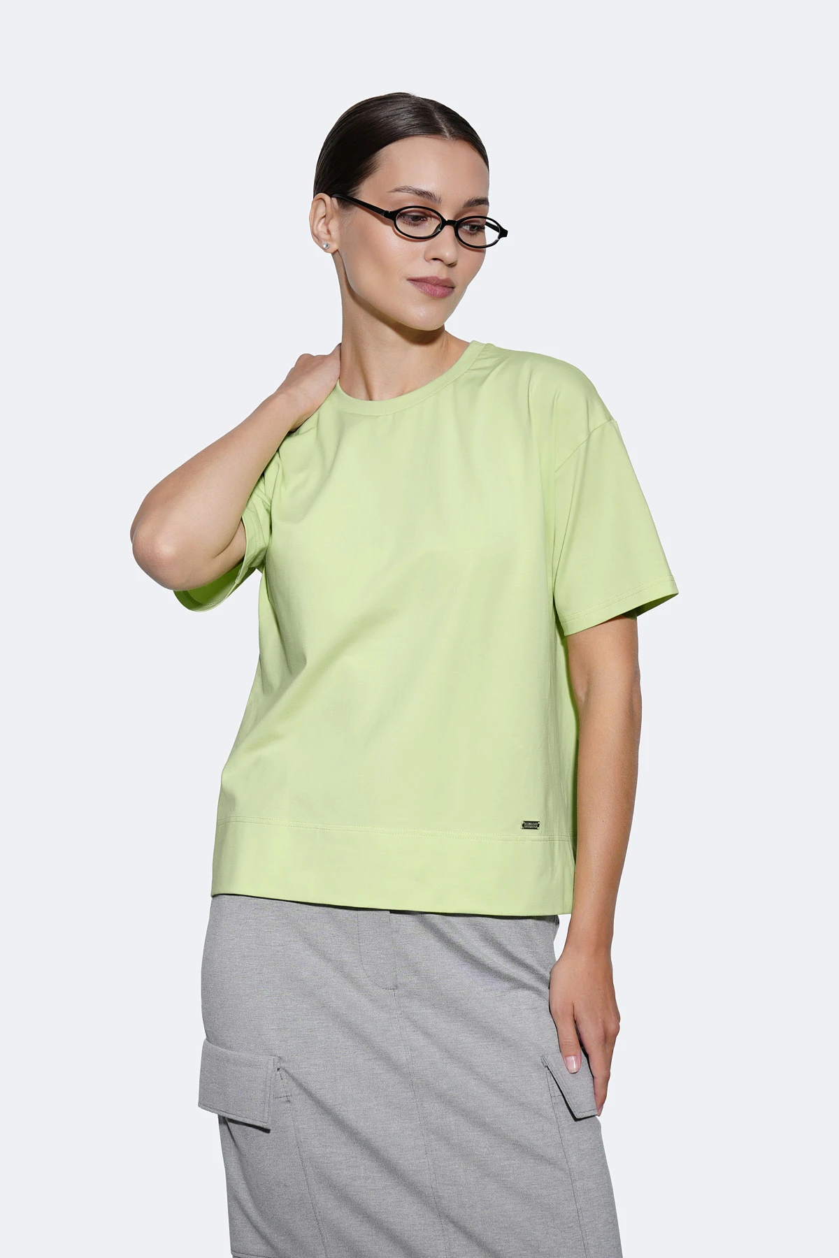 Монохромная футболка свободного силуэта из эластичного хлопкового трикотажа Пенье в лаймовом оттенке. Натуральный материал обеспечивает комфорт и воздухопроницаемость.