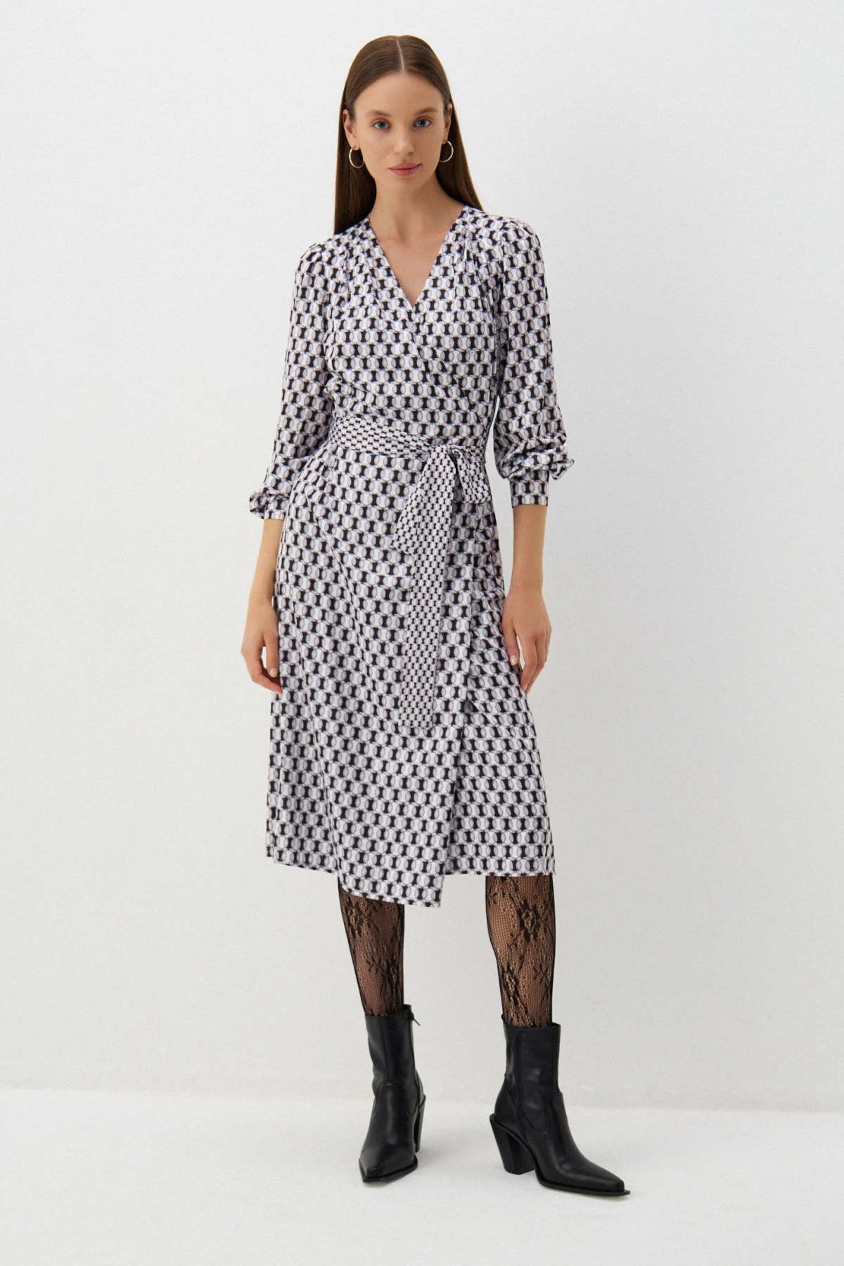 Очень красивое платье. Ткань легкая. Не мнется, и очень приятная к телу. Не смотря на легкость ткани платье отлично смотрится и с туфлями, и с легкими сапогами. На размер 44 отлично сел 44. На рост 163 см длина платья по ниже колена.