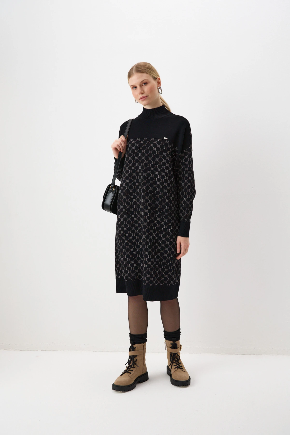 Красивое, качественное платье. Ткань приятная, ношу уже несколько месяцев, все в порядке. Ношу 42 размер, рост 165, платье ниже колена, прикрыла все что нужно. Купила похожие ботинки как у модели на фото, все вместе выглядит очень стильно, а главное мне очень удобно.