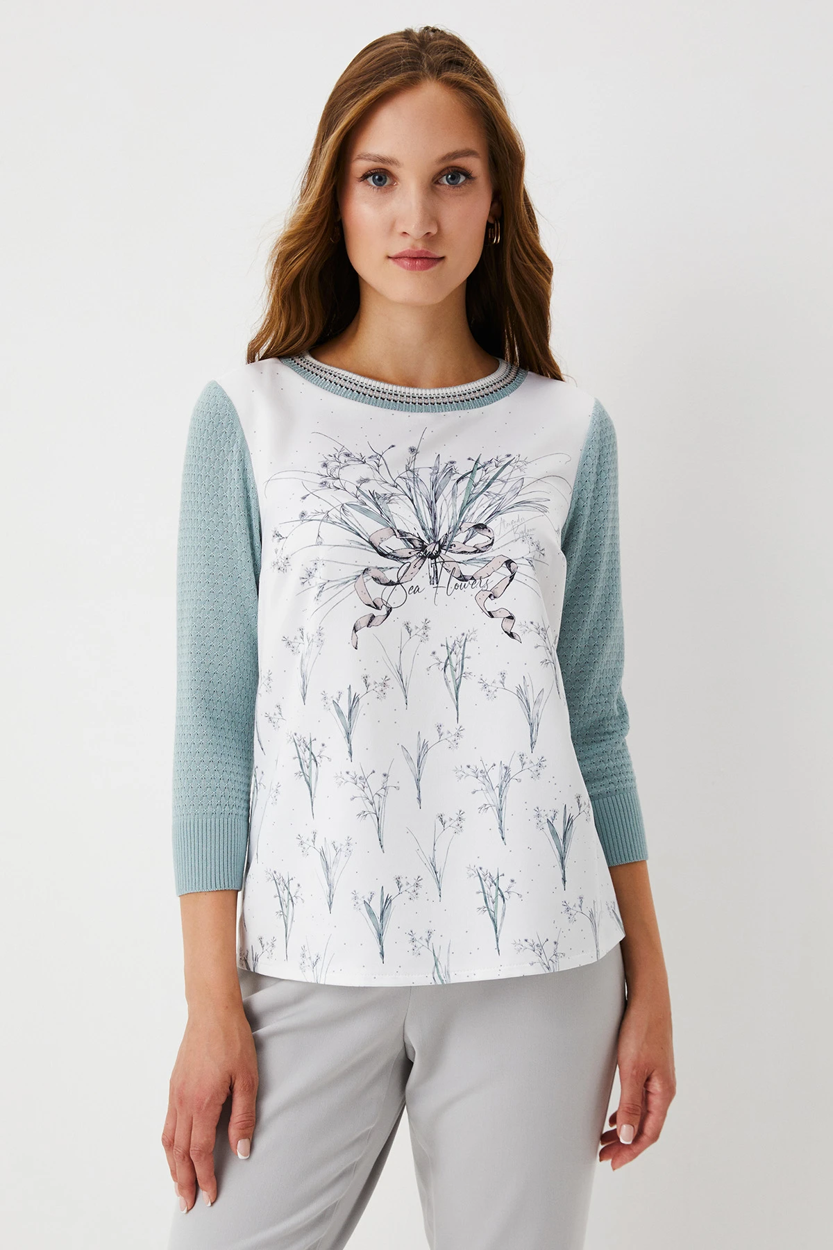 Очень нежный джемпер)Освежает образ и превосходно подходит и к юбкам и к брюкам.Мне очень нравится сочетание трикотажа и вискозы, выглядит весьма достойно!