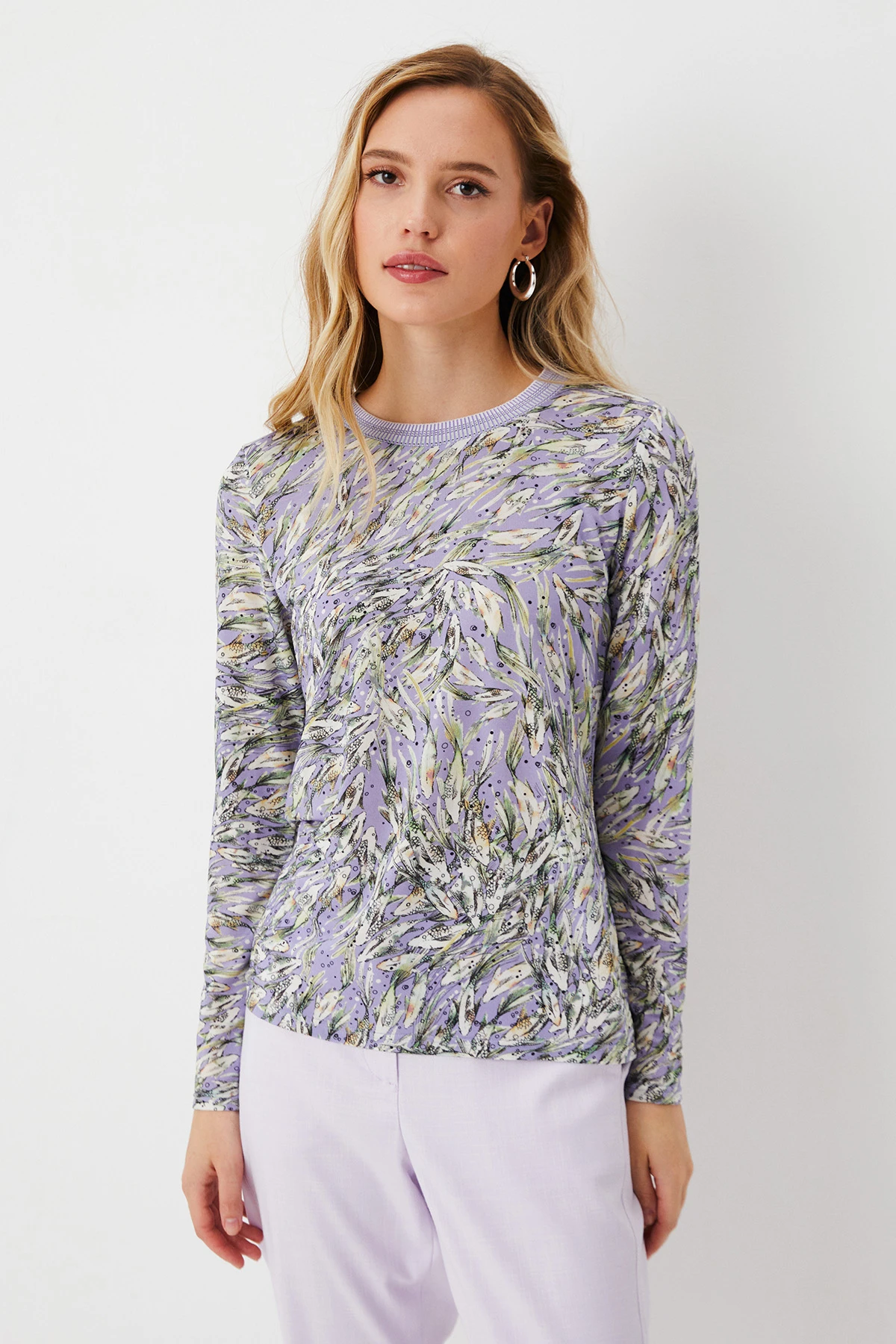 Джемпер из гигроскопичной и воздухопроницаемой вискозы с авторским принтом.