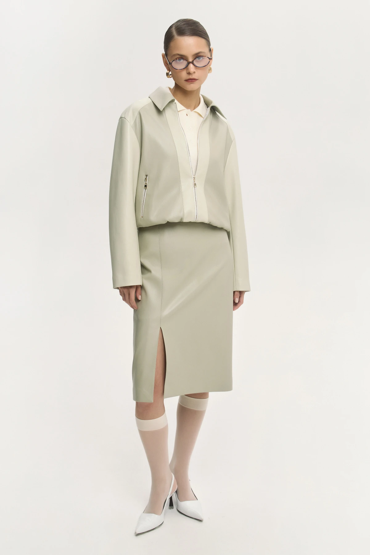 Восхитительный костюм, цвет просто восторг. Ношу по отдельности и вместе. Экокожа лучше, чем у известных итальянских марок. С нетерпением жду новых моделей от Александра!!!