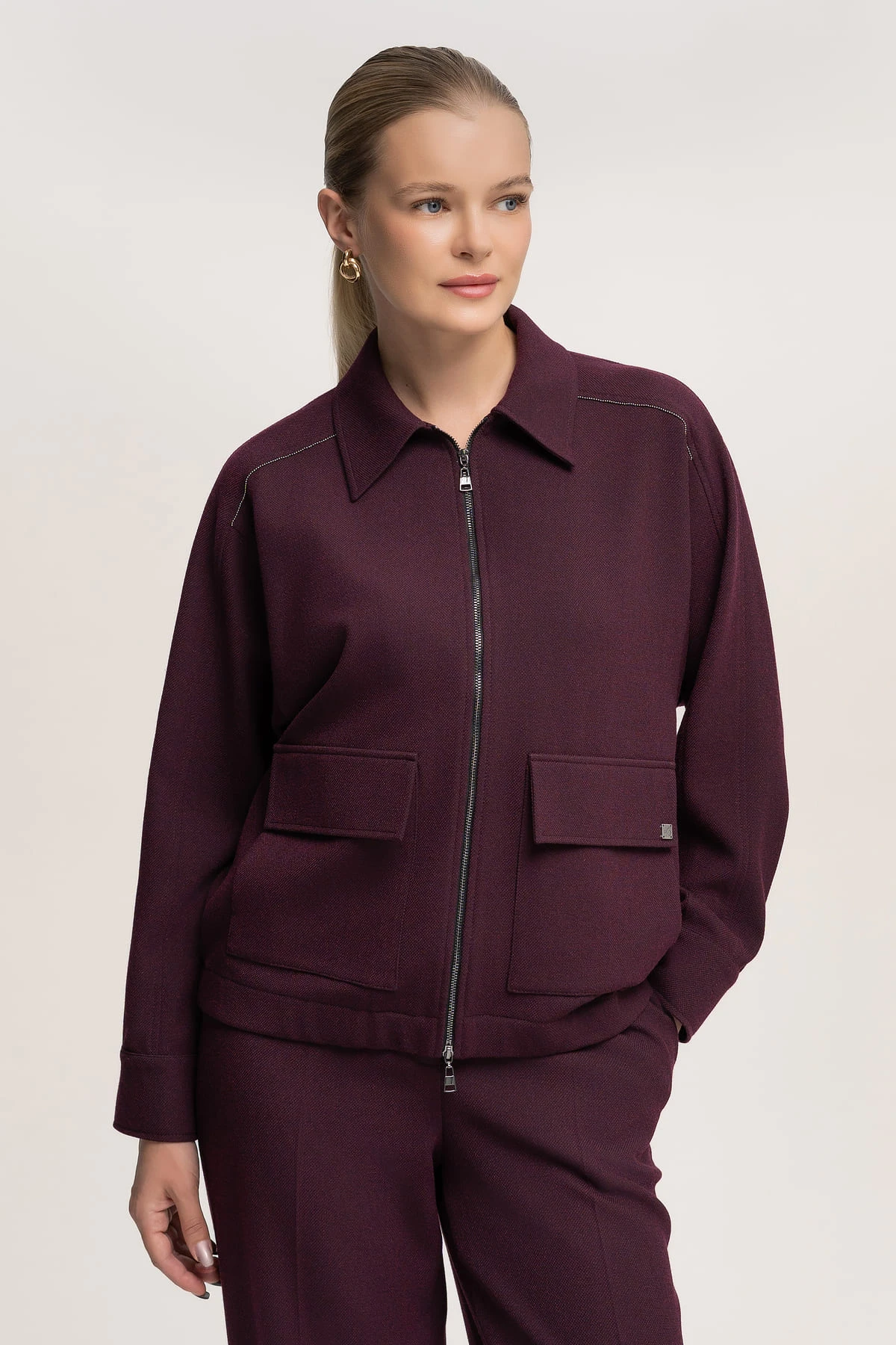 Глубокий оттенок малинового вина создаёт акцент в гардеробе. Чёткая геометрия кроя с мягкой линией плеча придаёт баланс пропорций.